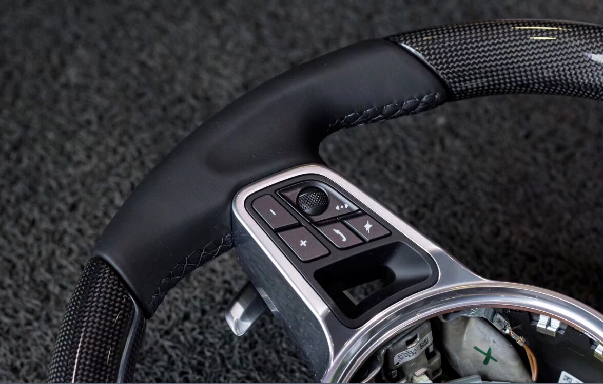 材質說明:採用優質碳纖維與光油UV,碳纖維不僅紋理清晰,耐燃耐濁,優質的光油可以保護表層久用不發黃,增長壽命。 功能說明:支持加熱功能,冬天裡非常實用;提升駕駛體驗,方向盤握感飽滿,充盈,提升駕駛體驗從方向盤開始;細膩光滑真皮,包覆與內飾同色的光面真皮,皮質柔軟細膩;時尚碳纖質感,為內飾增添運動氣息,帶來不一樣的視覺效果。